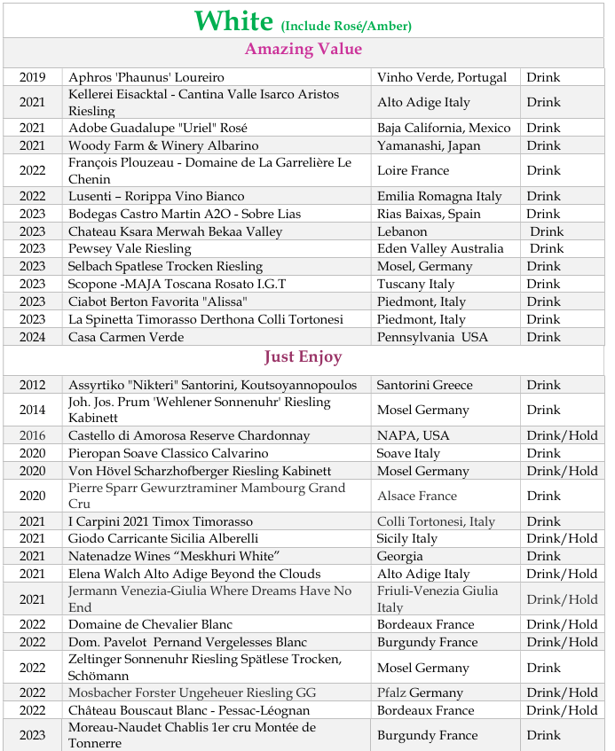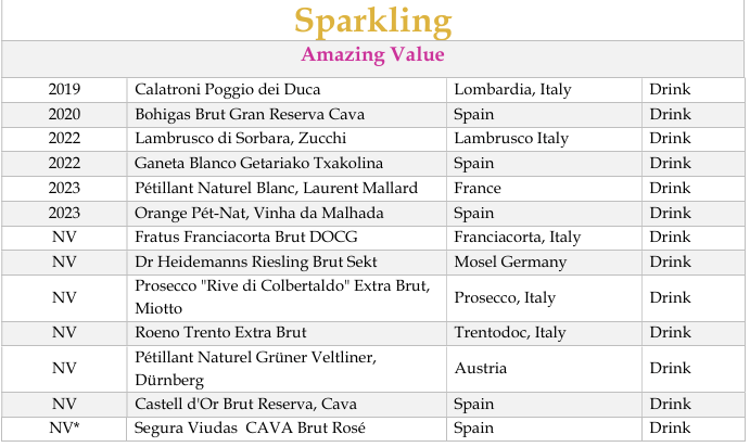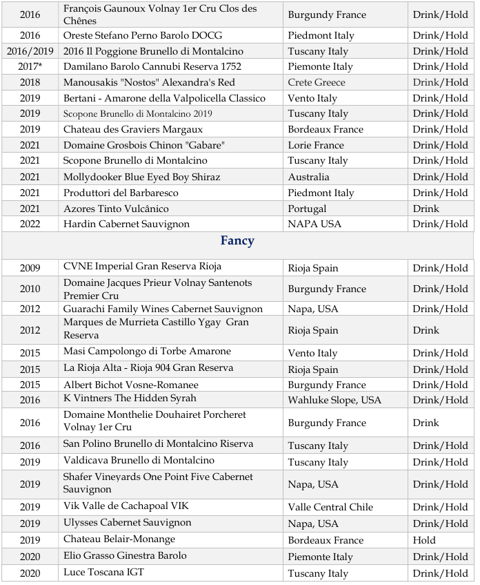 - Amazing Value (<$30): Wines that offer exceptional quality without breaking the bank. (*means less than $20 after tax!)