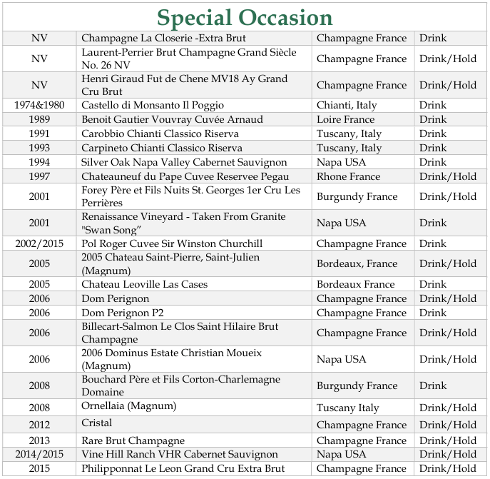 - Fancy ($75-$200): A Wow Wine on the table. More complex and concentrated wine with longer finish. Wines that are collectible and often have age potential.